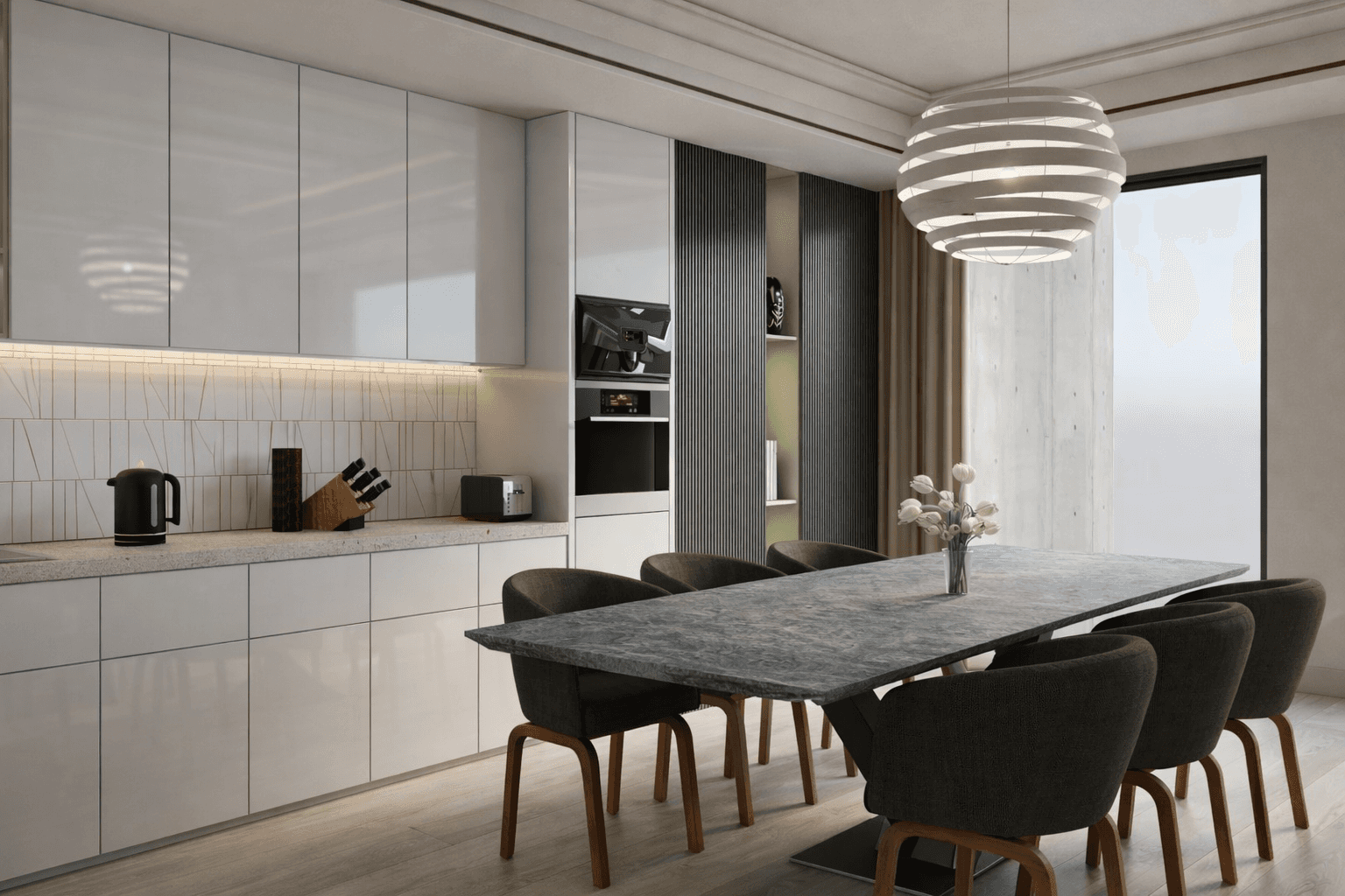 Ne përzgjedhim me kujdes materialet, ndriçimin dhe mobilimin për të krijuar ambiente të unifikuara që pasqyrojnë personalitetin dhe funksionin — qoftë banim, komercial apo mikpritës.